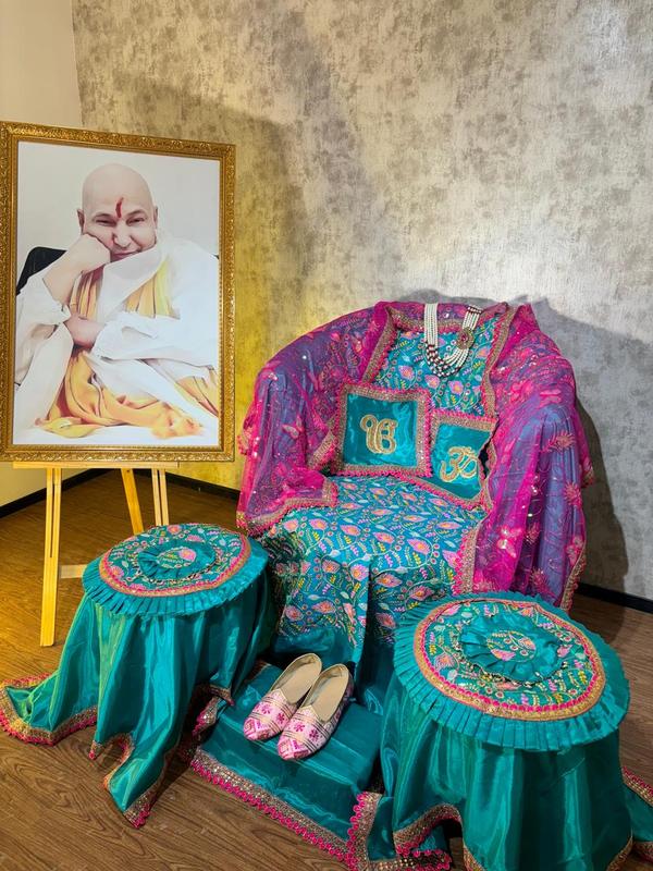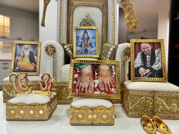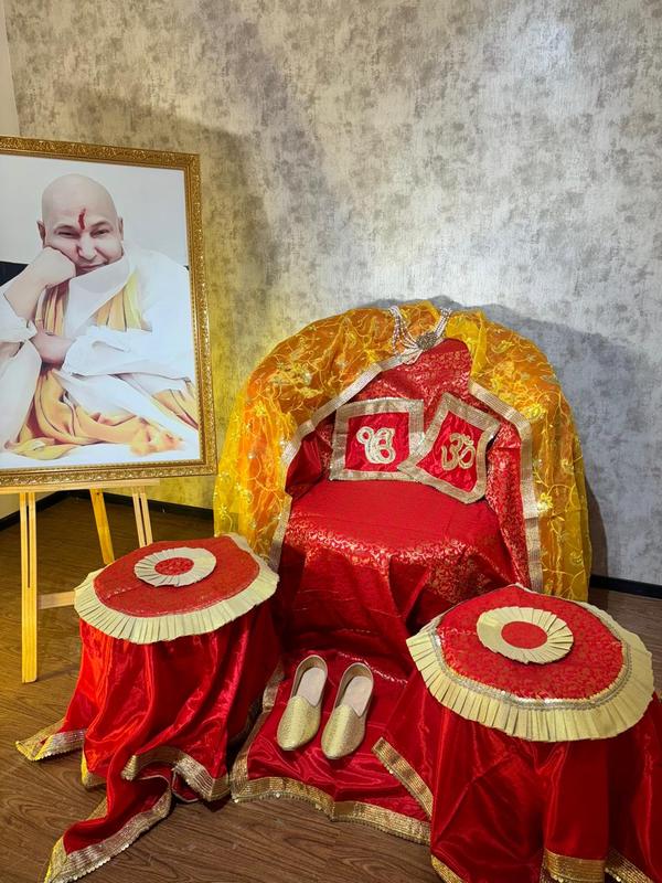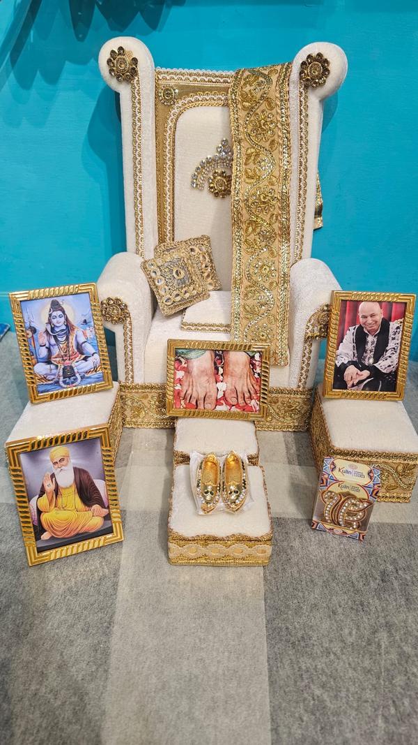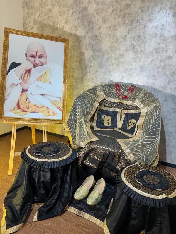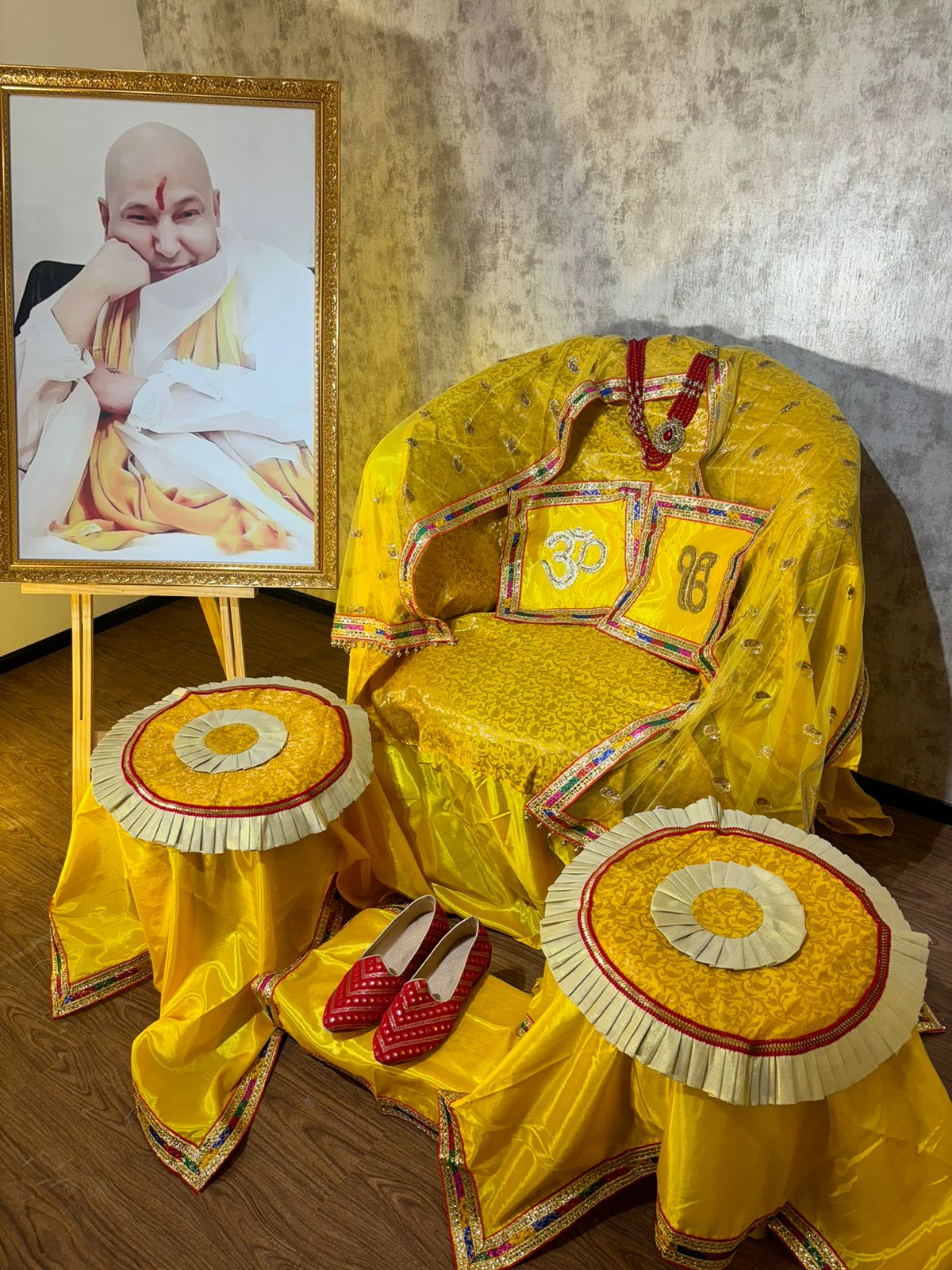 "Divine glow in every thread ✨ #GurujiBlessings" "Golden grace, Guruji’s embrace 💫" "Blessed in g...